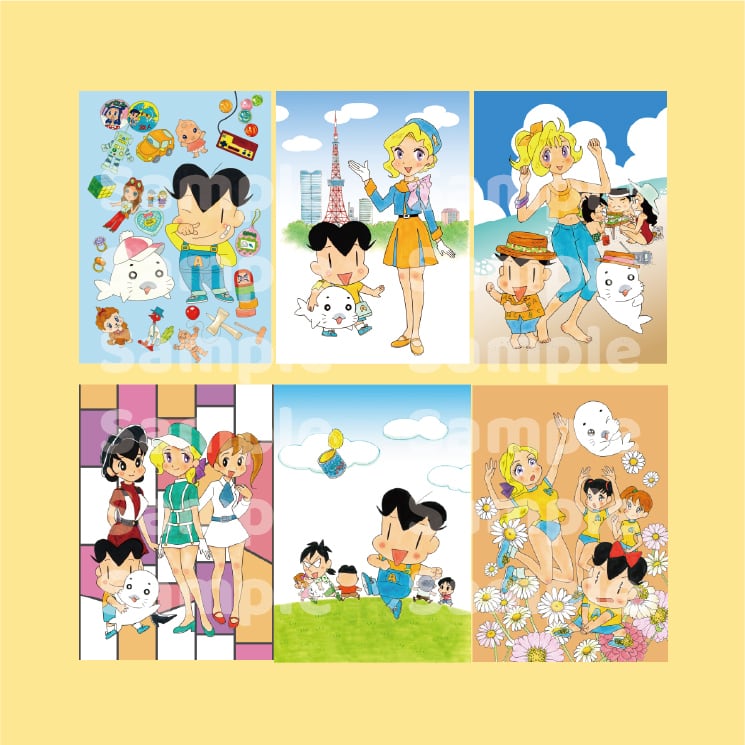 昭和をテーマに書き下ろしたイラストのポストカード6枚セットです。